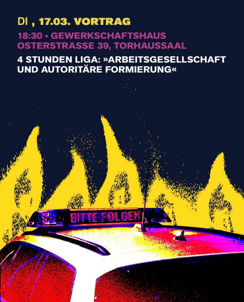 Was hat der Kapitalismus mit autoritärer Formierung zu tun? Diese Frage bearbeitet der Vortrag aus Perspektive der Arbeit. Das Leben und der Alltag der großen Mehrheit der Menschen ist davon bestimmt, dass sie ihre Arbeitskraft verkaufen müssen. Werktag für Werktag, Jahr für Jahr, werden sie gefordert und müssen die vielfältigen Zumutungen der Lohnarbeit ertragen. Dabei sind sie einem kapitalistischen Normalvollzug, der undemokratisch organisiert ist und ihre konkreten Bedürfnisse ignoriert, unterworfen. Diese Zumutungen bringen in ihrer Form als Autoritäts- und Herrschaftsverhältnisse autoritäres Denken hervor und befeuern die Entstehung autoritär rechter Bewegungen. Dieses Verhältnis werden wir in unserem Vortrag am Beispiel des Nationalsozialismus beleuchten. Dabei werden wir uns mit dem nationalsozialistischen Arbeitsethos auseinandersetzen, das Arbeit wesentlich als Selbstzweck, als sittlich-moralisches Gebot und vor allem als Aufopferung für die Volksgemeinschaft begriffen hat. Wir werden sehen, dass ein spezifisches Verständnis von Arbeit zu antisemitischer, antiziganistischer und sozialchauvinistischer Ausgrenzung und Vernichtung führte und sich heute aktualisiert in autoritären Bewegungen und Ideologien wiederfindet. Vor diesem Hintergrund werden wir uns mit radikaler Arbeitszeitverkürzung auseinandersetzen. Auch weil diese Forderung den deutschen Arbeitsethos und Vorstellungen, wonach wir Unternehmer:innen unserer Selbst sein sollen, zurückweist, eröffnet sie Wege für ein Verständnis menschlicher Wertigkeit, das nicht um Arbeit zentriert ist.